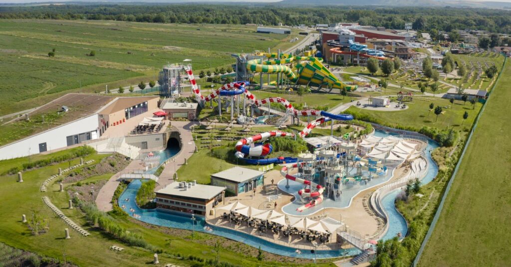Moderní aquapark s bazény, tobogány a wellness centrem. Ideální pro rodinnou zábavu a relaxaci po celý den.